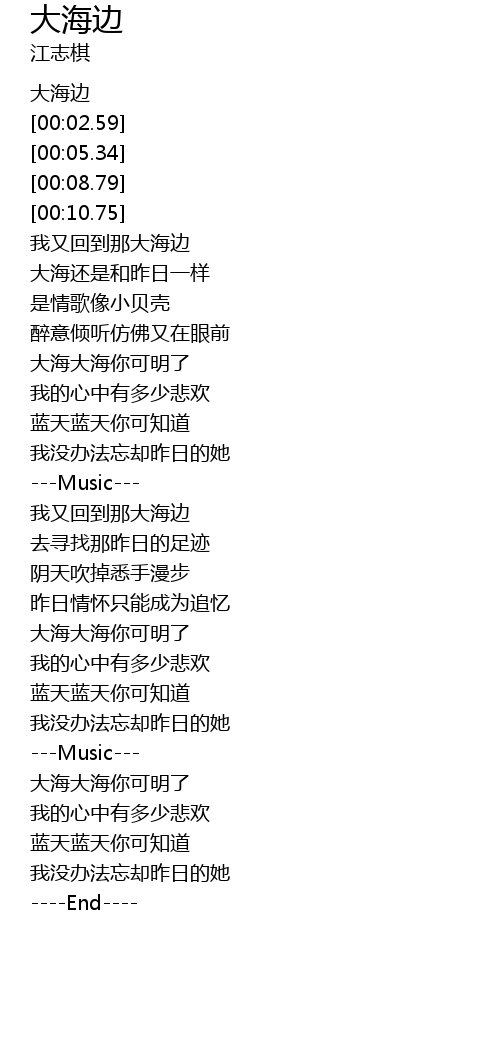 | [00:01.51] | 大海边 |