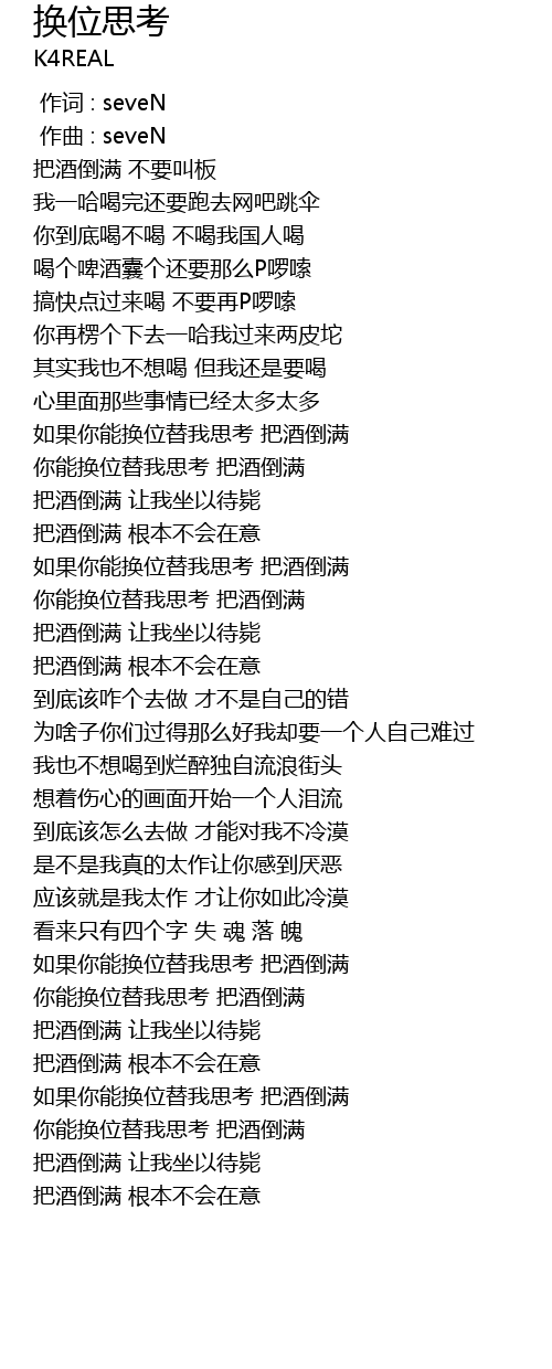 | [00:54.950] | 你能换位替我思考 把酒倒满 |