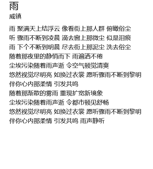 | [01:06.00] | 尘埃污染随着雨声逝 令空气顿觉清爽 |