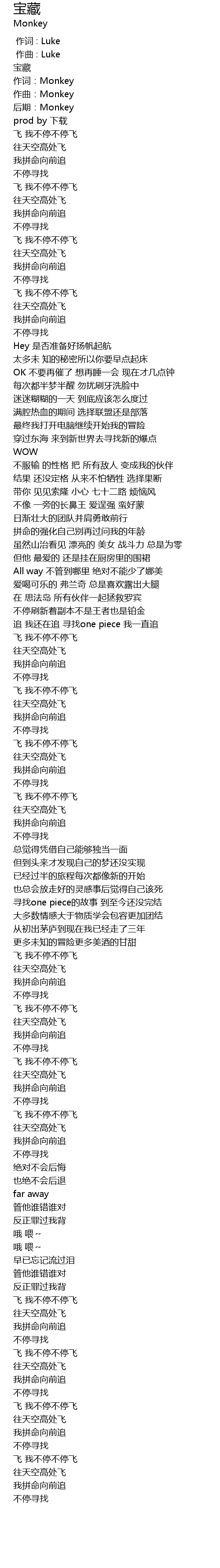 | [01:36.894] | 追 我还在追 寻找one piece 我一直追 |