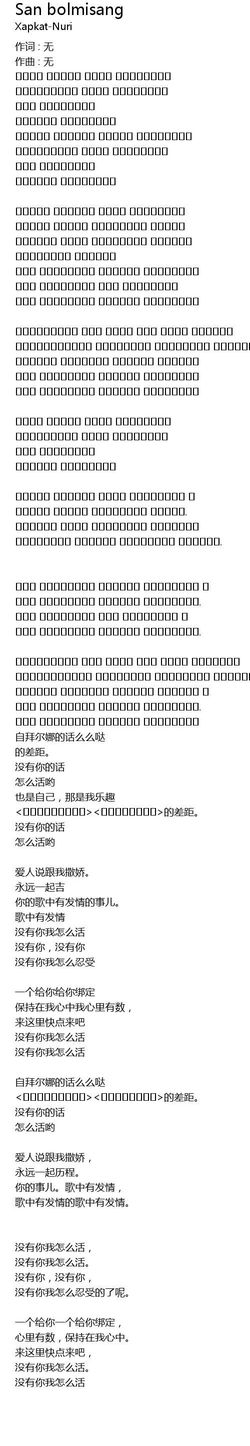 | méi yǒu nǐ, méi yǒu nǐ, | |