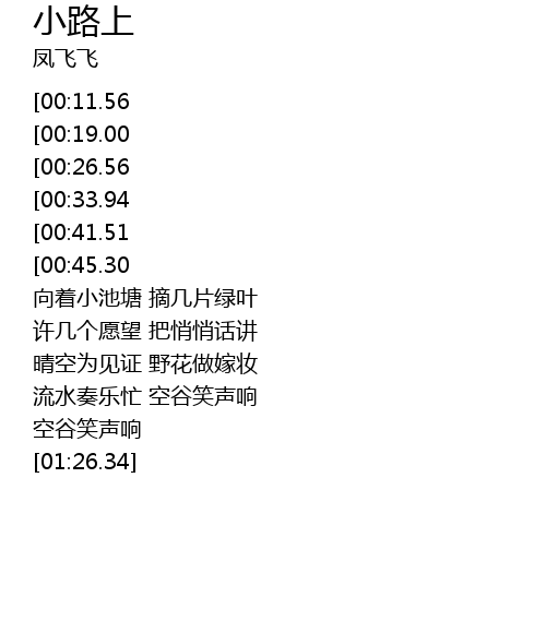 | [01:59.90][00:33.94] | 看看彩云飞 听听鸟歌唱 |