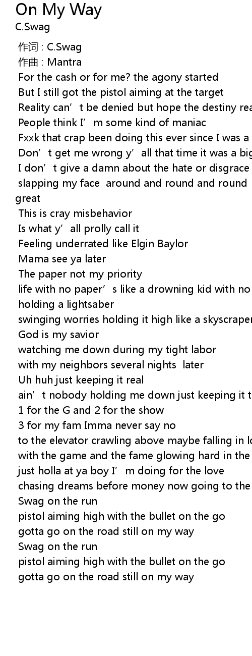 | [00:00.000] | 作词 : C.Swag |