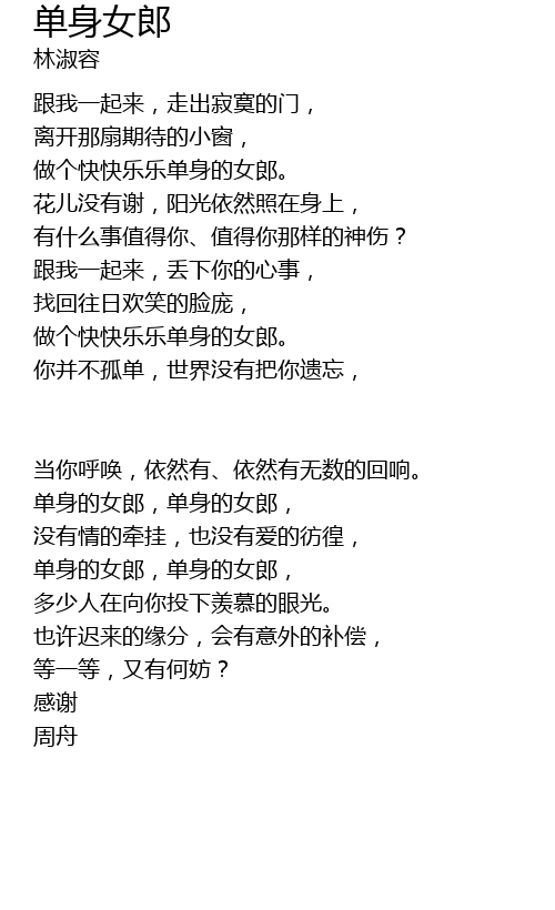 | dān shēn de nǚ láng, dān shēn de nǚ láng, | |