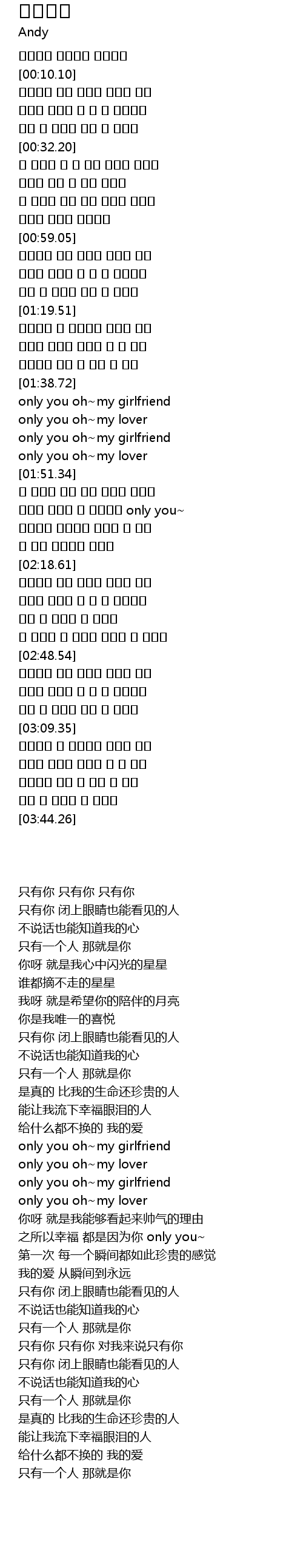 | [01:41.63] | only you oh~my lover |