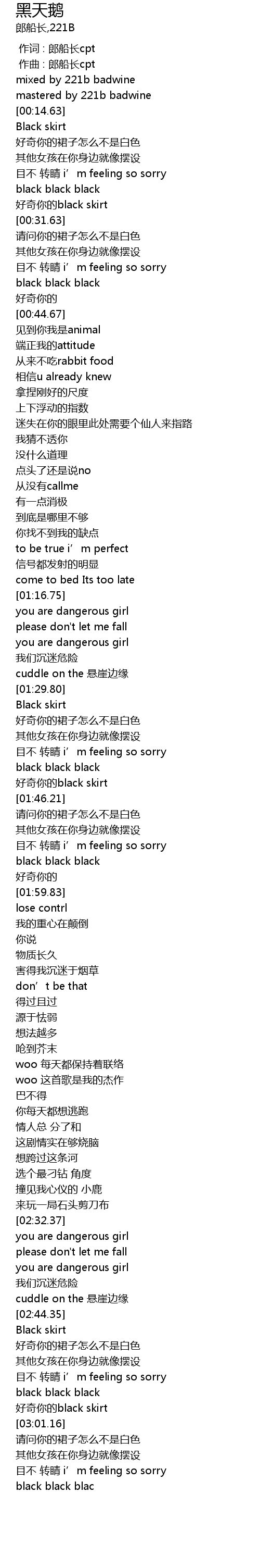 | [01:44.58] | 好奇你的black skirt |