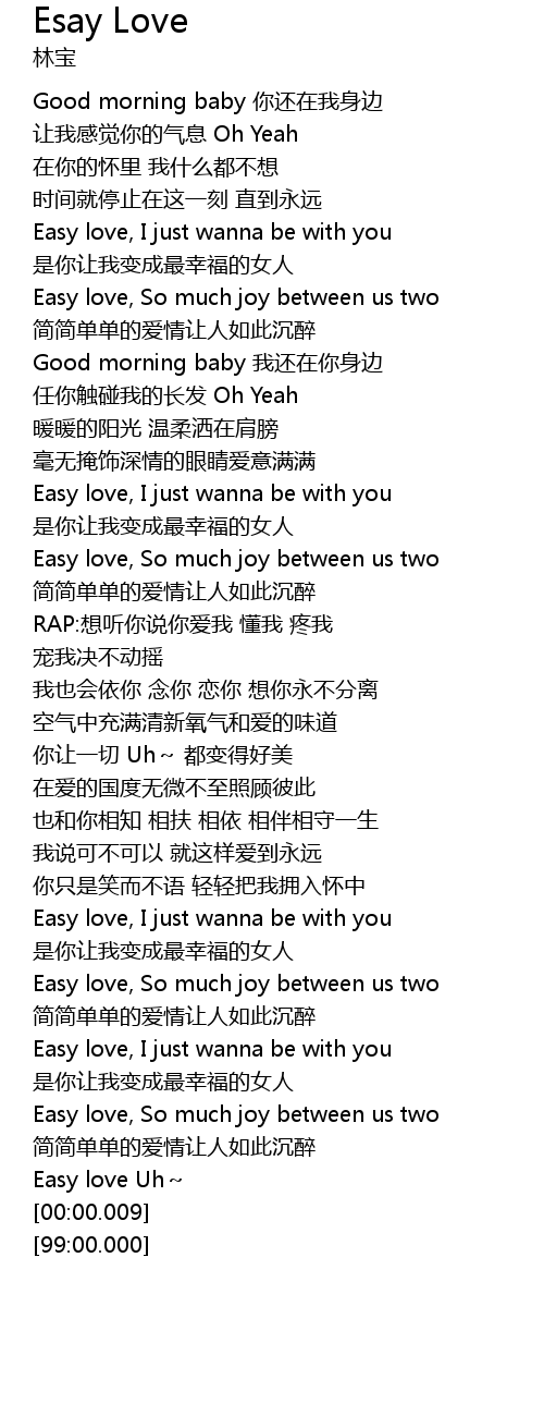 | [00:09.15] | Good morning baby 你还在我身边 |