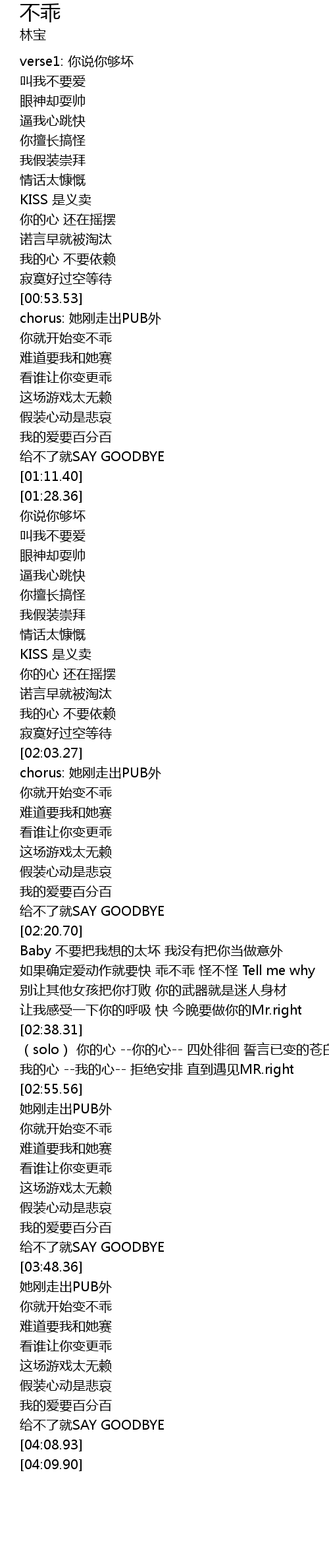 | [04:03.77] | gěi bù liǎo jiù SAY GOODBYE |
