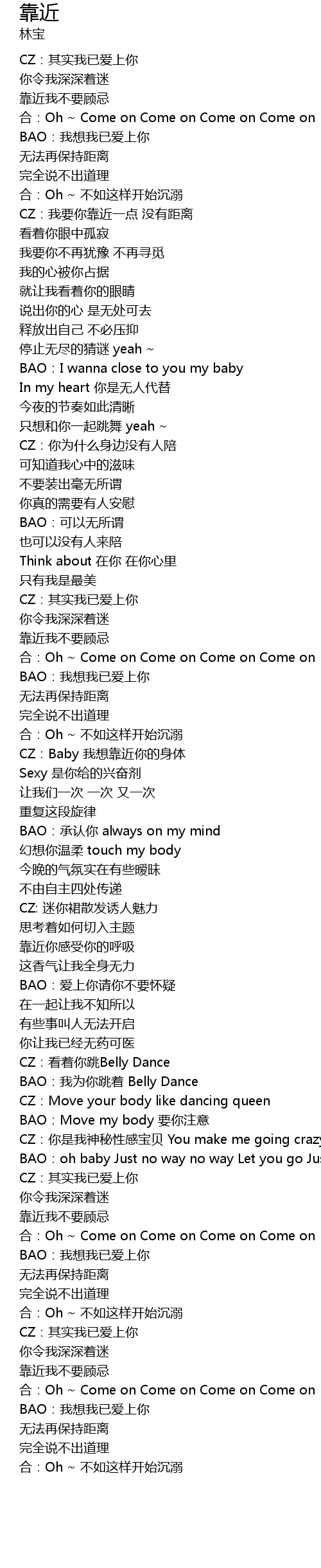 | CZ: Baby wǒ xiǎng kào jìn nǐ de shēn tǐ | |