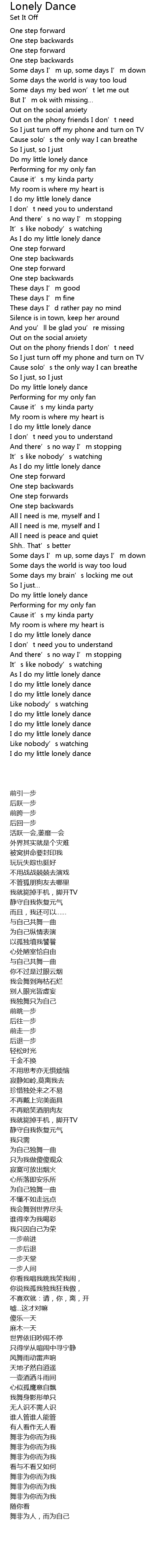 | [00:32.651] | Do my little lonely dance |
