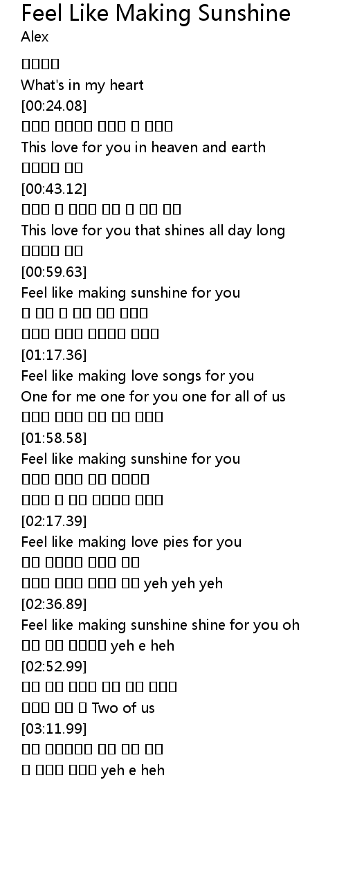 | [02:37.47] | Feel like making sunshine shine for you oh |