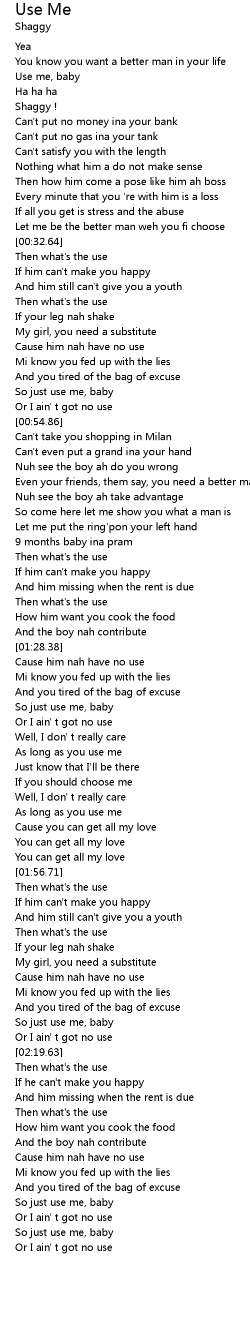 | [00:49.87] | So just use me, baby |