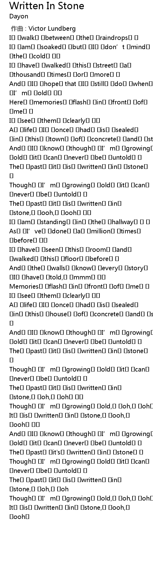 | [02:41.27] | The past it is written in stone, oh, oh |