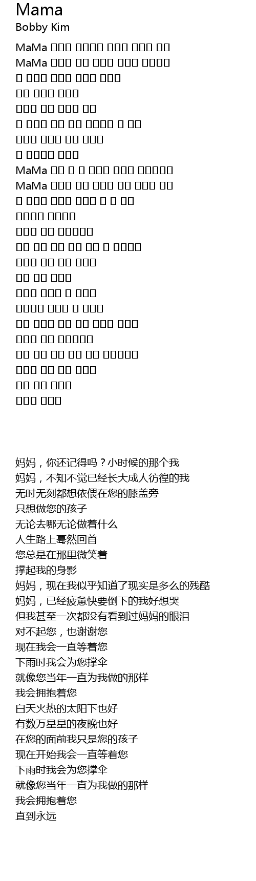 | [00:15.570] | MaMa 아직도 기억해요 어릴적 당신의 품을 |