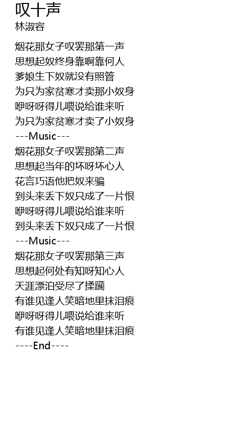 | Song | 叹十声 |