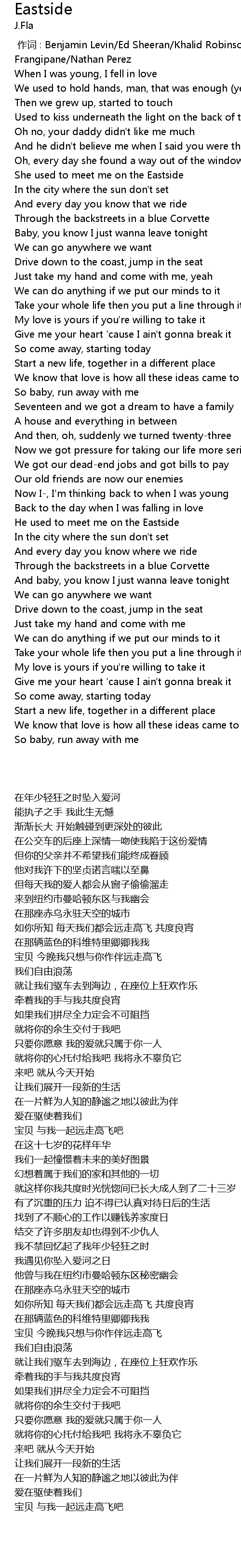 | [00:32.638] | She used to meet me on the Eastside |