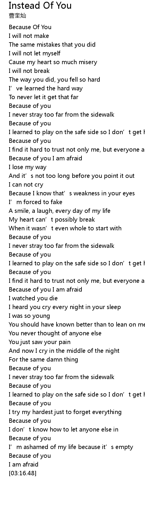 | [00:48.67] | Because of you |