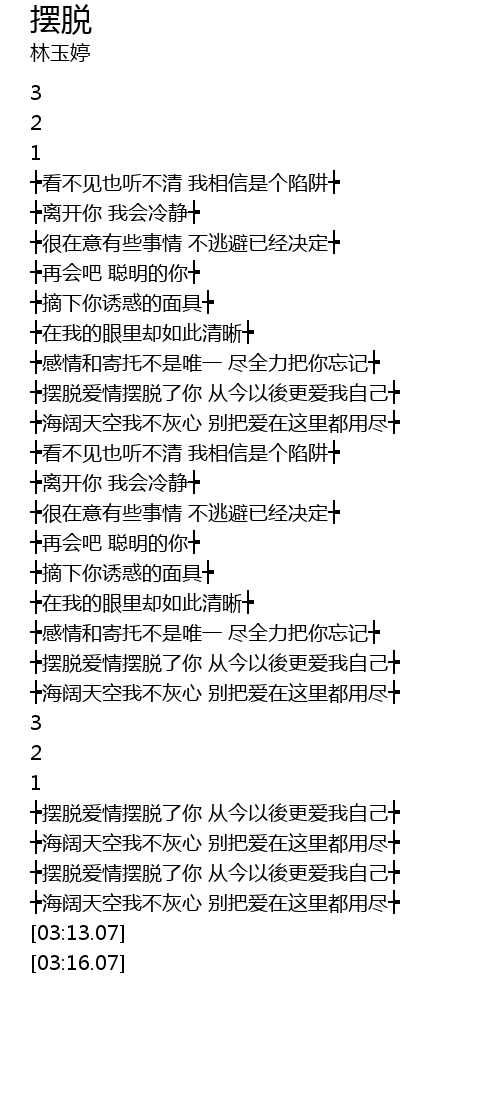 | [01:53.35] | ┾摆脱爱情摆脱了你 从今以後更爱我自己┾ |