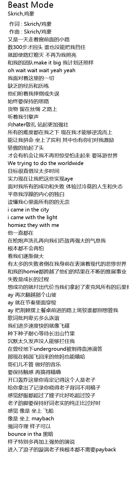 | [00:00.000] | 作词 : Skrich/鸡豪 |