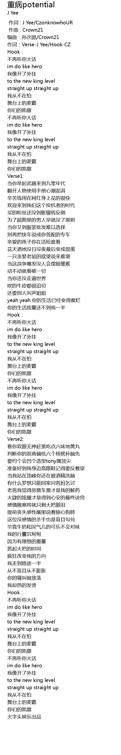| [00:04.555] | 作词:Verse-J Yee/Hook-CZ |
