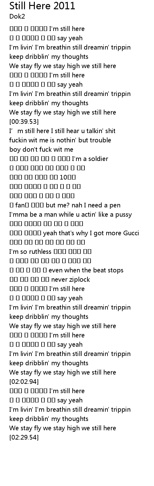 | [00:22.48] | We stay fly we stay high we still here |