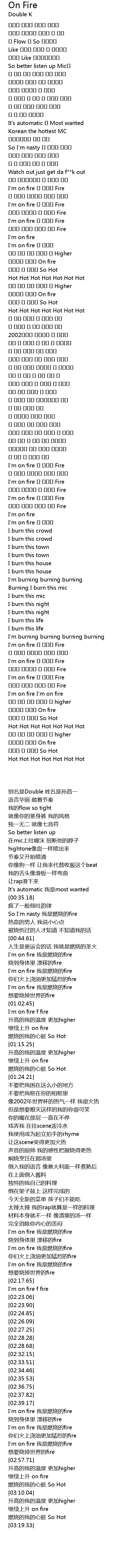 | [02:48.38] | I'm on fire 난 불타는 Fire |