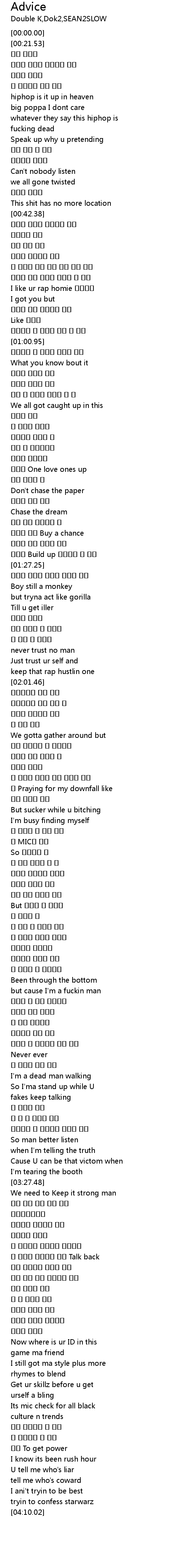 | [00:49.07] | 랩 여드름 썩은 고름 고인 노란 싹수 |