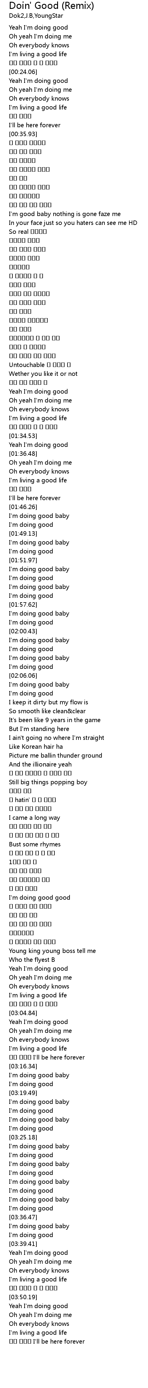 | [03:29.91] | I' m doing good |