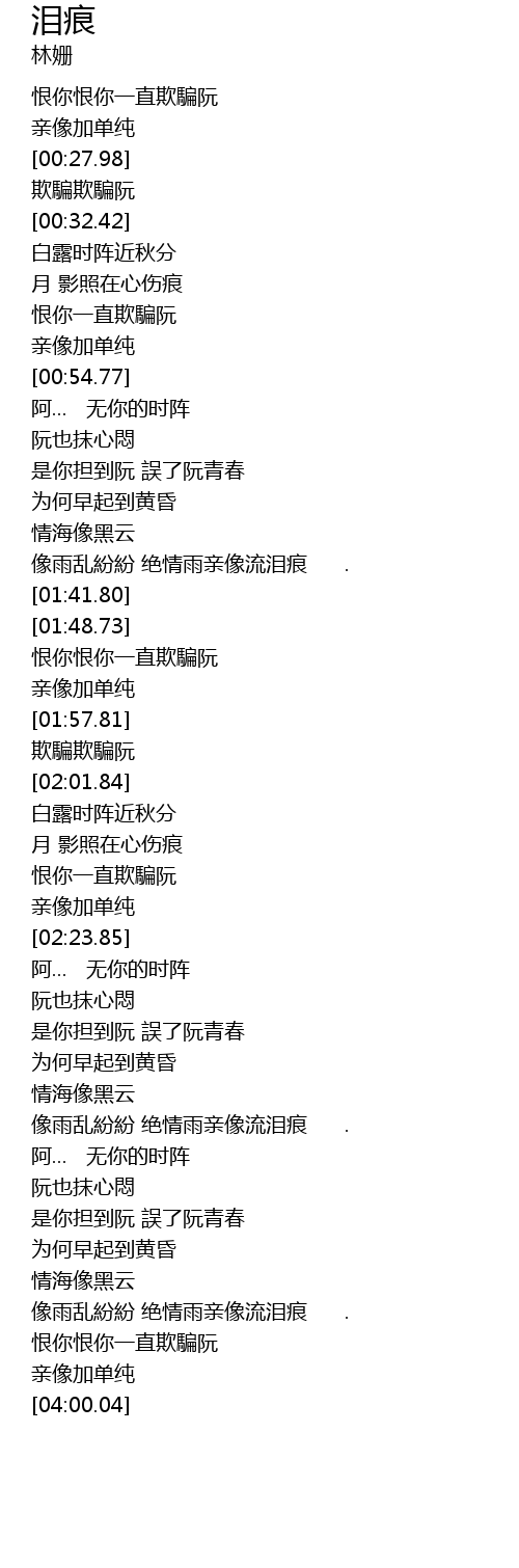 | [01:52.27] | 恨你恨你一直欺騙阮 |