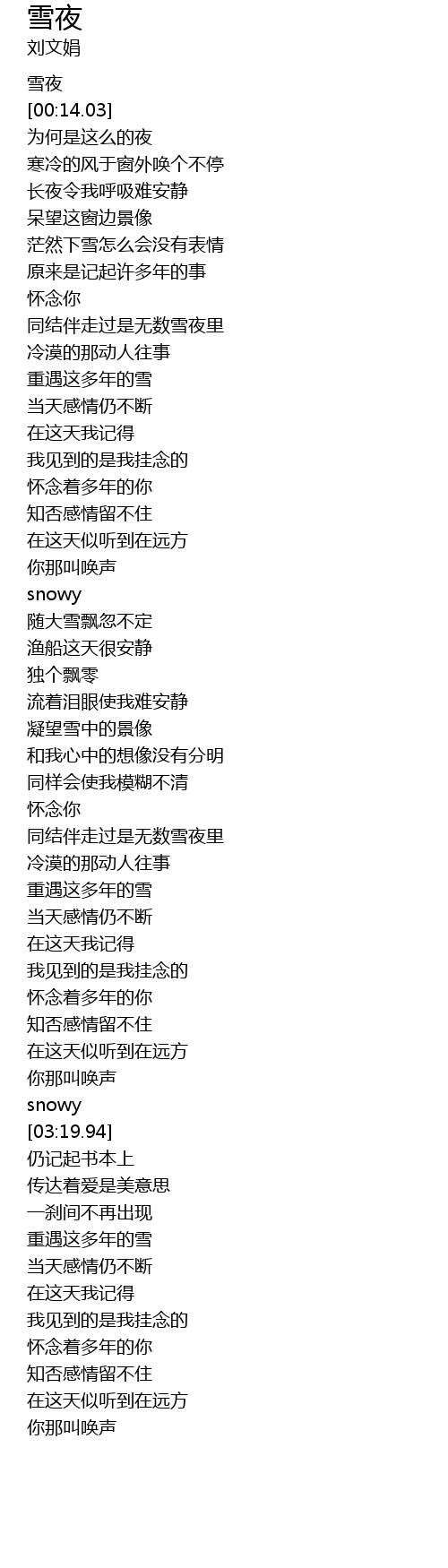| [00:46.99] | 茫然下雪怎么会没有表情 |