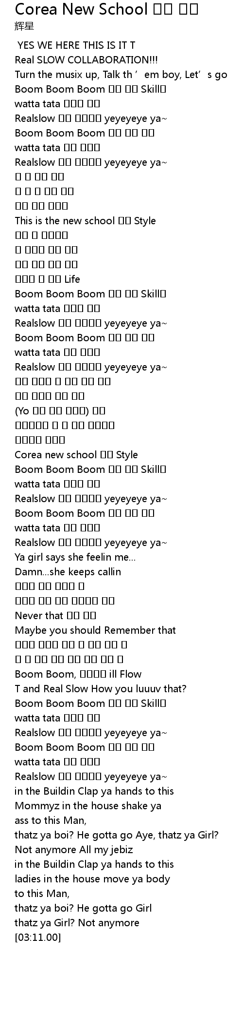 | [01:51.09] | Realslow 나는 제비라오 yeyeyeye ya~ |