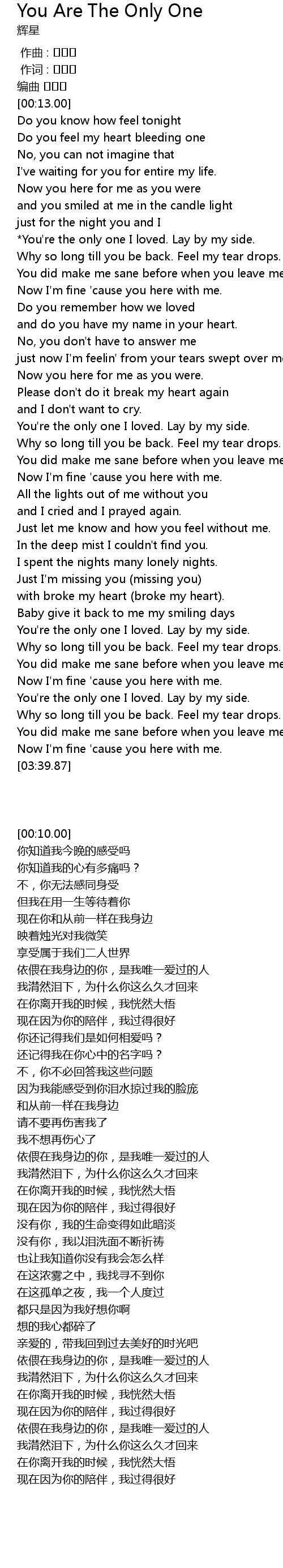 | [00:51.31] | Why so long till you be back. Feel my tear drops. |