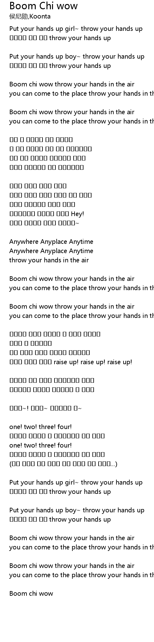 | Boom chi wow throw your hands in the air | |