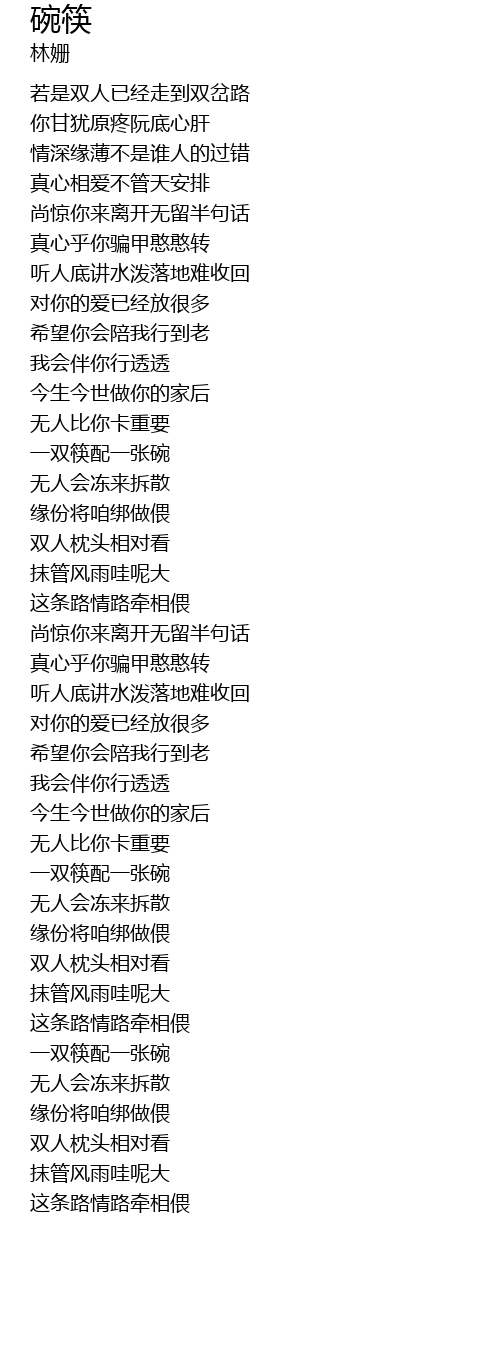 | [01:56.14] | 一双筷配一张碗 |