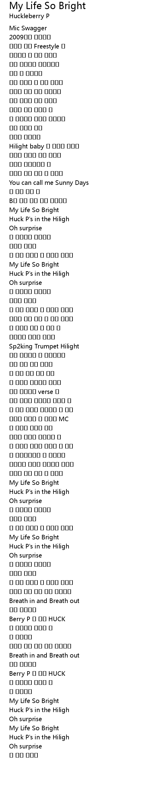 | [02:31.81] | Berry P 그 앞엔 HUCK |