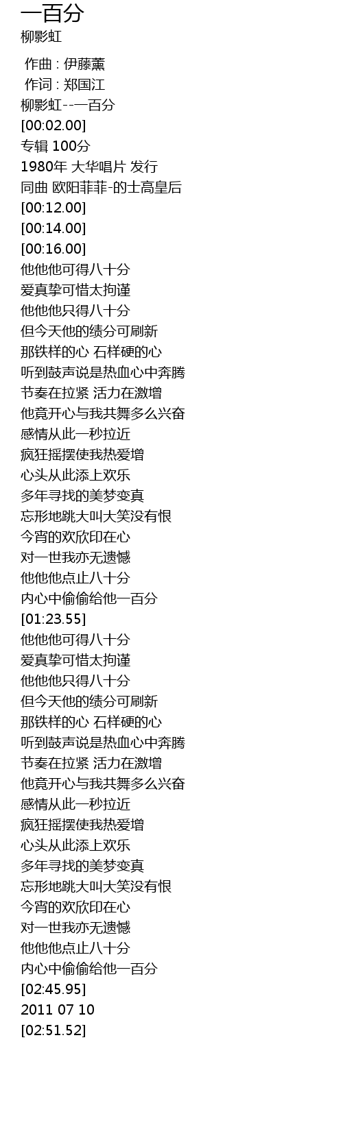 | [00:00.00] | liǔ yǐng hóng yī bǎi fēn |