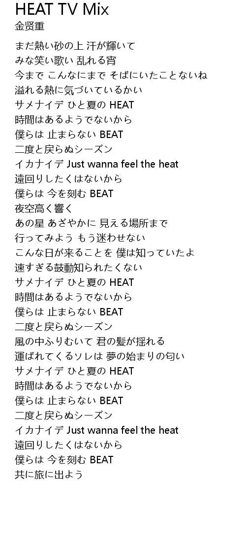 | Just wanna feel the heat | |