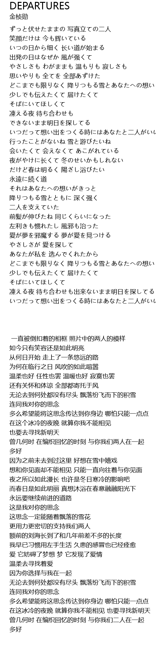 | [05:26.24] | どこまでも限りなく 降りつもる雪とあなたへの想い |