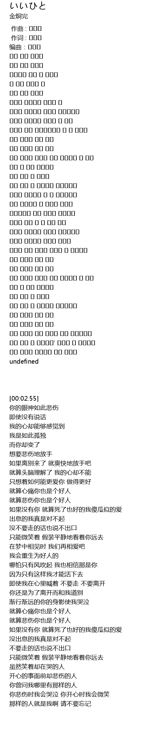 | [02:38.76] | 가슴 아파도 좋을 사람 |