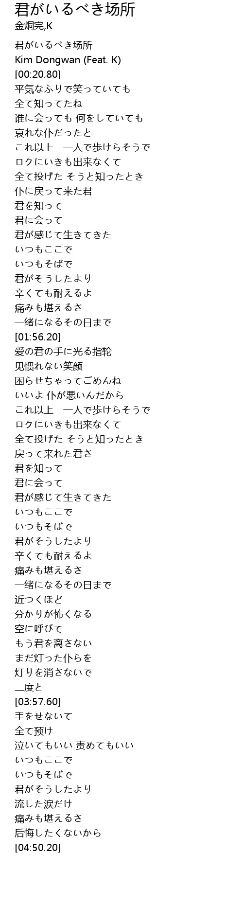 | [00:13.80] | Kim Dongwan (Feat. K) |