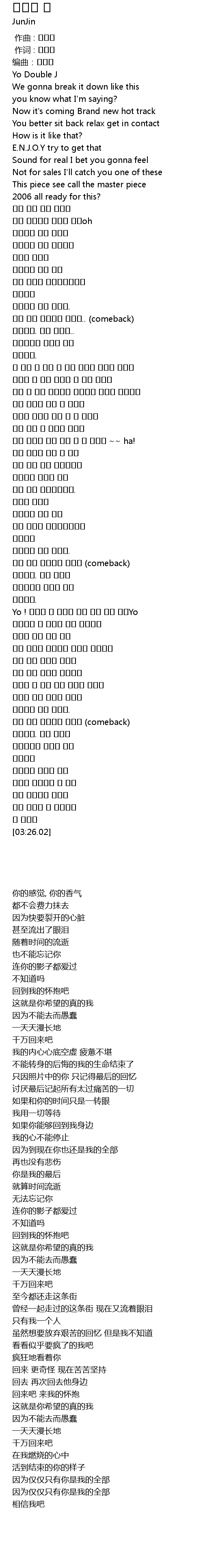 | [02:17.59] | 니가 진짜 원하는건 나인걸 (comeback) |