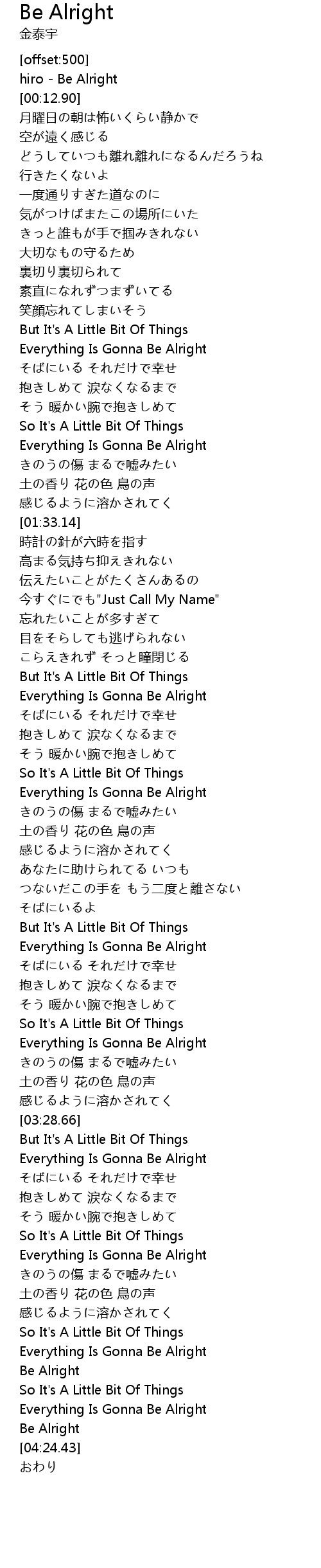 | [02:11.99] | Everything Is Gonna Be Alright |