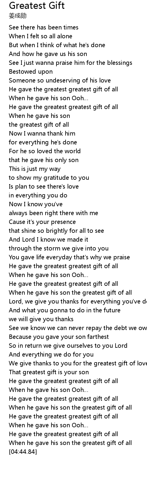 | [03:40.22] | He gave the greatest greatest gift of all |