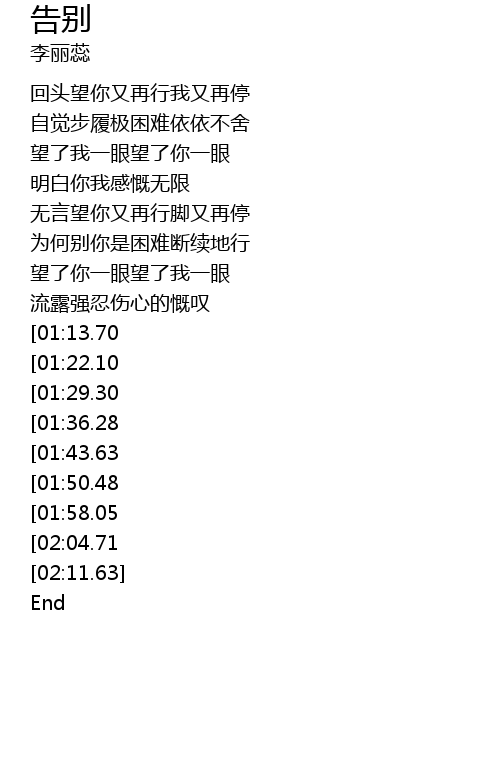 | [00:25.03] | 自觉步履极困难依依不舍 |