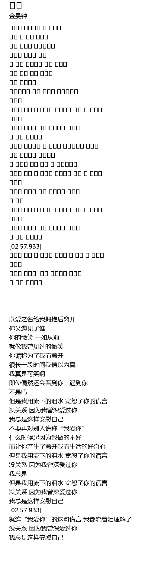 하지만 너의 그 거짓을 용서하고 있어 난 흐르는 눈물로 |