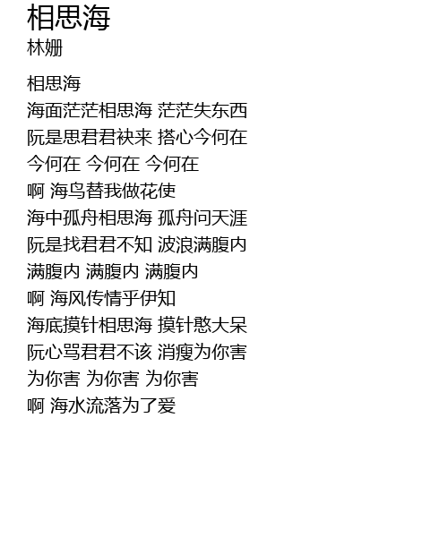 | [00:17.87] | 海面茫茫相思海 茫茫失东西 |
