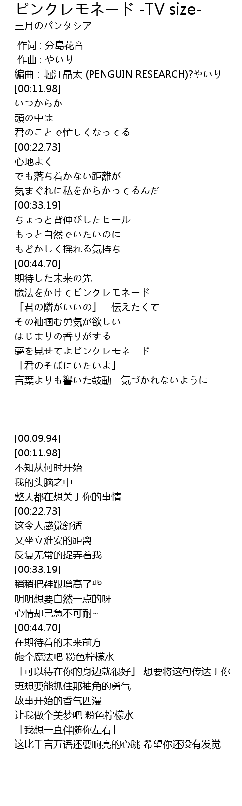 | [00:09.94] | 編曲:堀江晶太 (PENGUIN RESEARCH)?やいり |