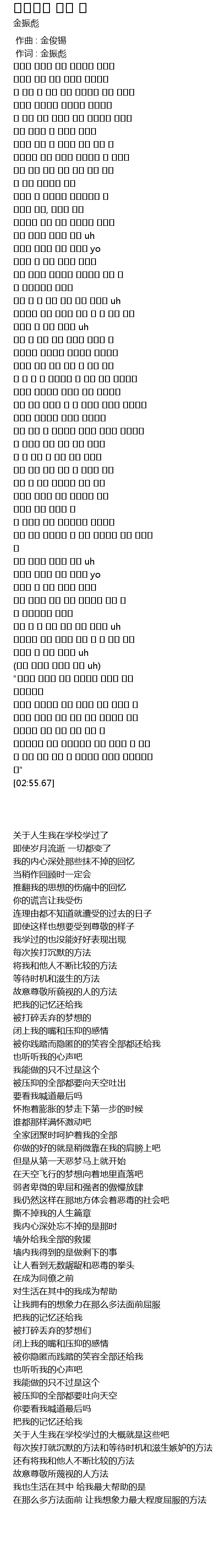 [02:18.26] "인생의 일할을 나는 학교에서 배웠지 아마 그랬을거야
