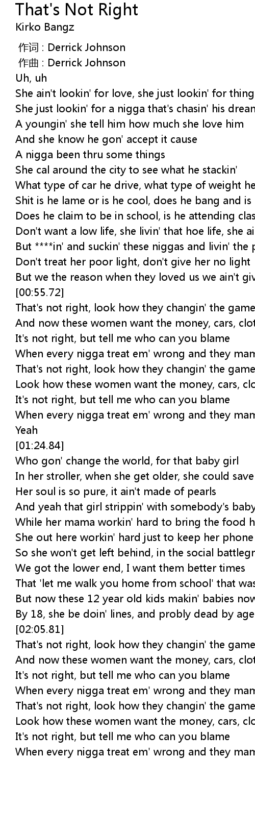 | [00:56.36] | That's not right, look how they changin' the game |
