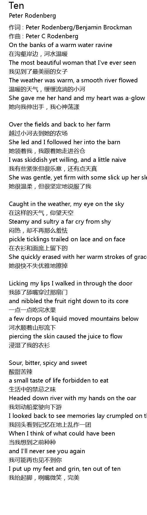 | 作词 : Peter Rodenberg/Benjamin Brockman | |
